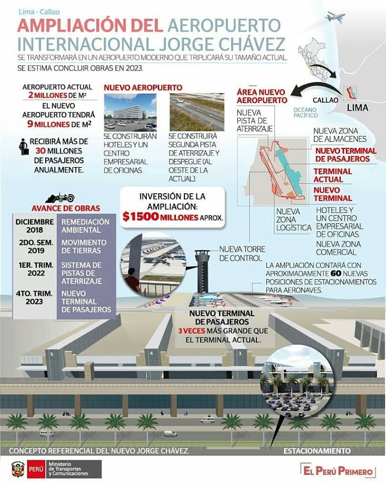 Querido viajero de TuPoint conoce cuáles son las fechas y los trabajos a realizar para la ampliación del Aeropuerto Jorge Chávez de Lima - Perú. Fuente: MTC