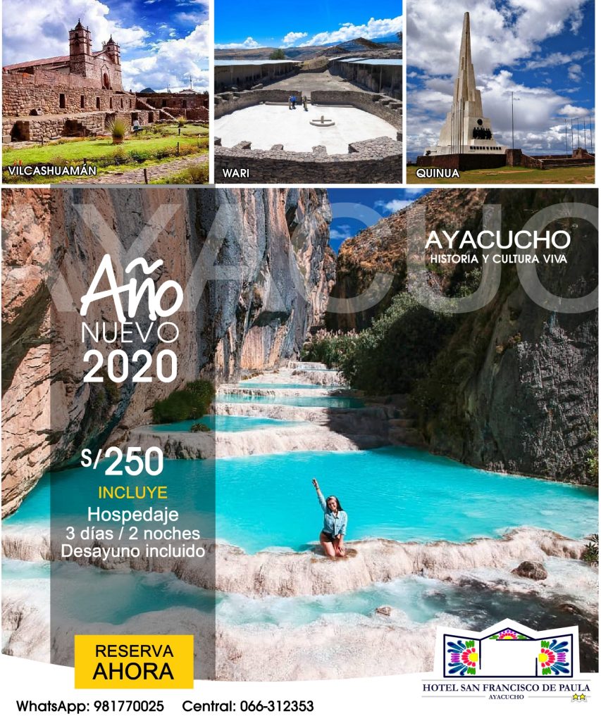 Recibe el Año Nuevo 2020 en Ayacucho con toda la alegría y tradición en la ciudad de las 33 Iglesias. Disfruta de 3 días y 2 noches + 1 City Tours para 2 personas (Habitación doble o Matrimonial Standar).