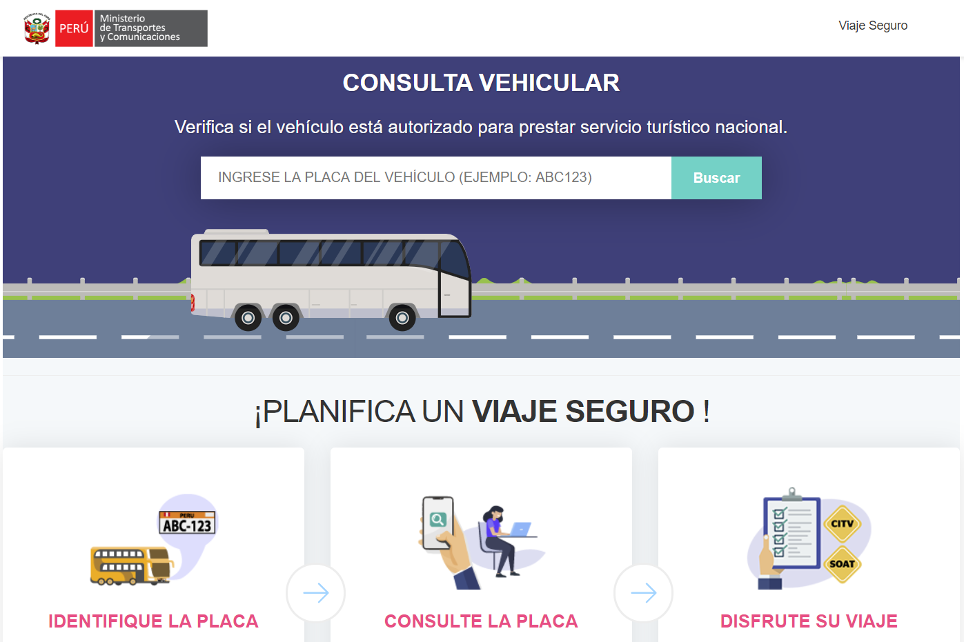 Por el motivo de fiestas el Ministerio de Transportes y Comunicaciones (MTC) lanzó la web https://viajeseguro.mtc.gob.pe/ con la finalidad de fortalecer la seguridad vial y la lucha contra la informalidad en el servicio de transporte interprovincial de pasajeros en nuestro país por Navidad y Año Nuevo.