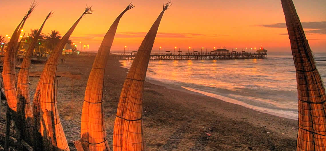 Ubicada en La Libertad. Una de los más fascinantes balnearios del Perú, sitio donde se emplazan algunas de las mejores playas de Perú, conocidas por su belleza escénica, grandes olas y por los característicos caballitos de totora que se alzan en sus arenas.